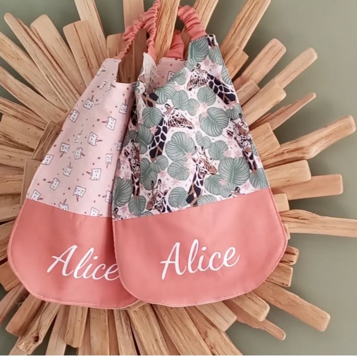 Pratique, cette serviette de table s’enfile et se retire très facilement par l’enfant grâce à son tour de cou élastiqué