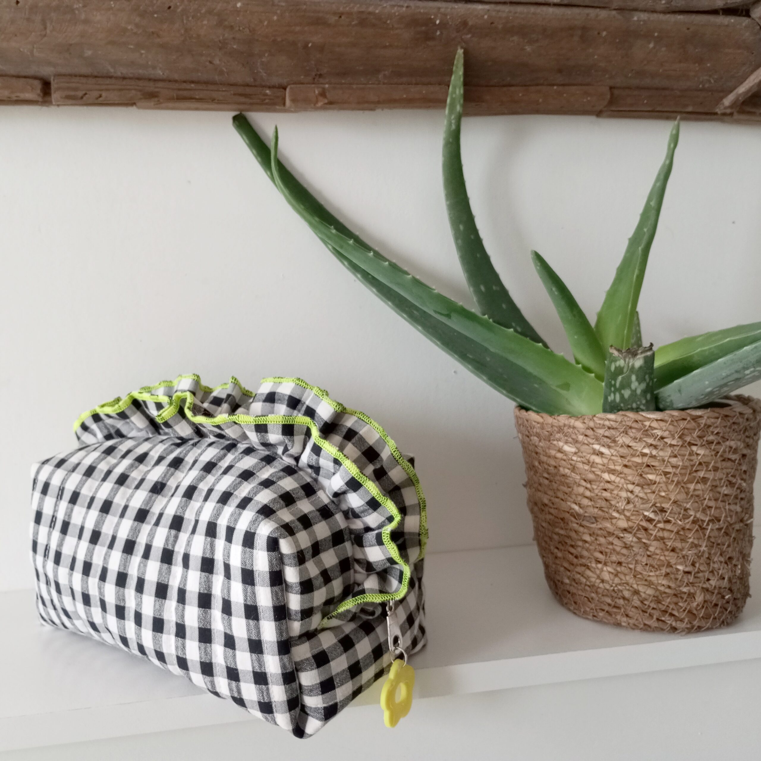 VENDU-Trousse maquillage vichy noir et blanc / jaune fluo